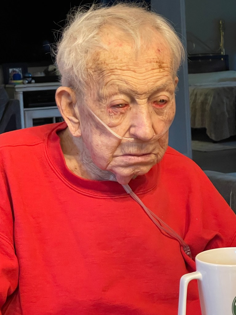 Another unusual day – which seems to be the norm, these days! This morning, April 1st, he woke up angry – didn’t want to get out of bed, but wants to go home (to Scranton) again. After a trip to the bathroom, we brought him out to the kitchen for some coffee and breakfast and as he finished up, Matthew arrived for his shower. After his shower, he was a different person – he rested a bit and he and I went outside to take advantage of the beautiful day! We talked about selling insurance, picking rocks and growing up … after an hour or so, we went inside for lunch – which he ate! It’s now 3:45PM and we just put him in bed – he’s likely down for the night.